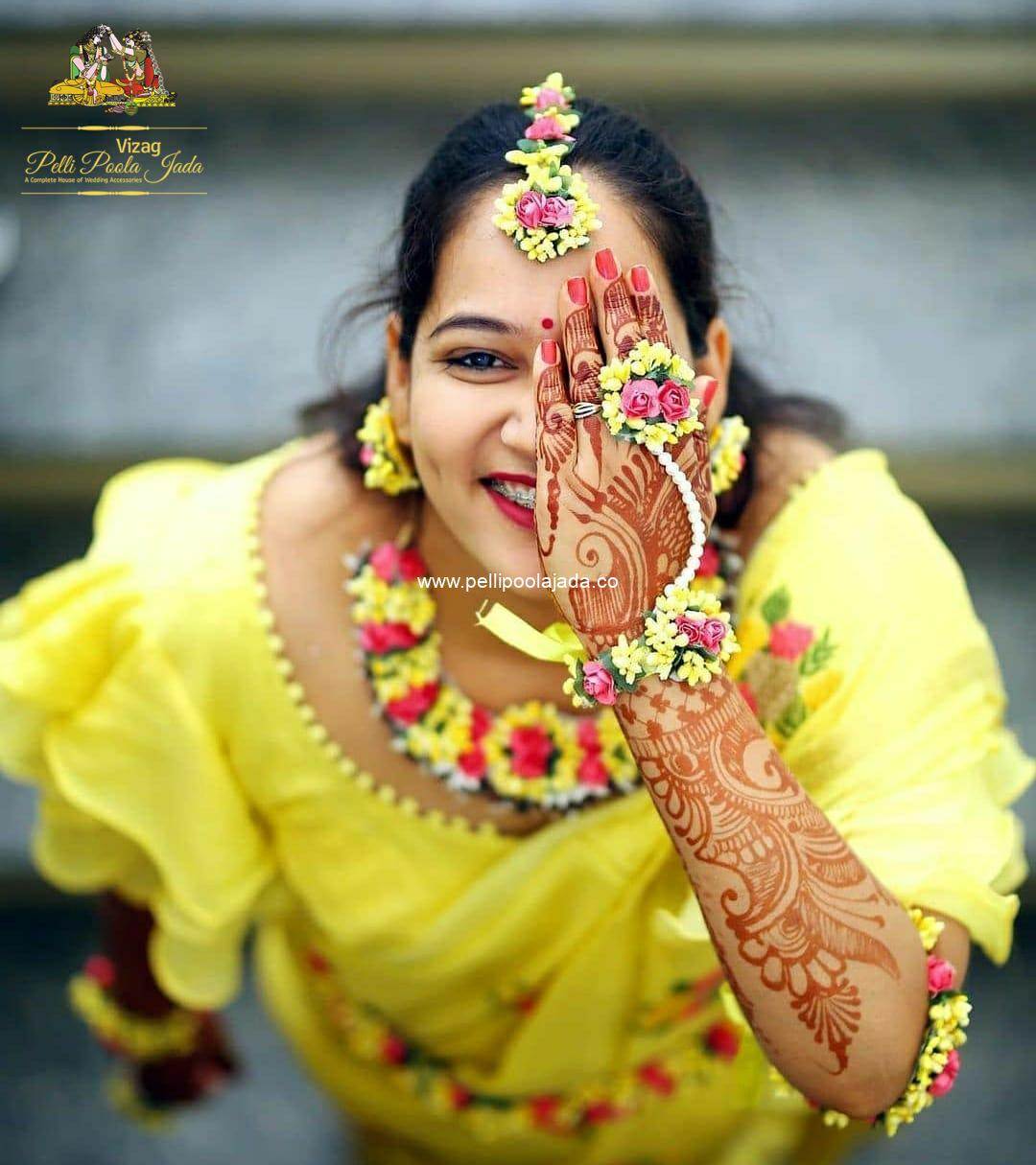 Traditionally known as Nethi Chutti, these are statement headpieces with various labyrinth designs made of exquisite flowers and are placed on the center of the bride’s forehead.