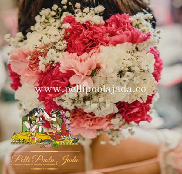 Here is one of the most beautiful bonding between mother and daughter. These flowers are very much suitable for any age group. We use baby breath flowers with pink cartesian to match with the bride’s outfit and outfit and mother’s outfit and look more elegant and most suitable for regular hairstyles also.