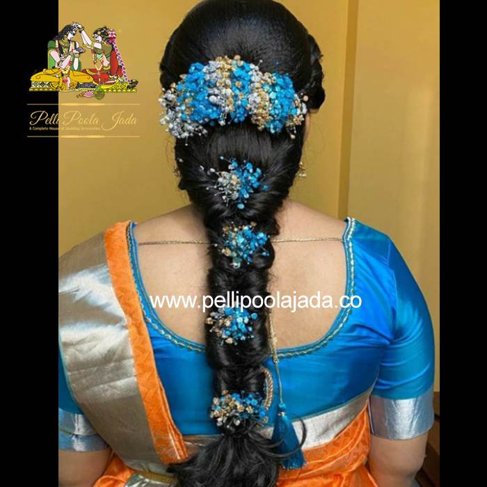 4. Gold, Blue and Green are natural flower venis (GAJRA) sparyed with flower sprays to match with bridal outfit. Should store in normal room temperature not in fridge.