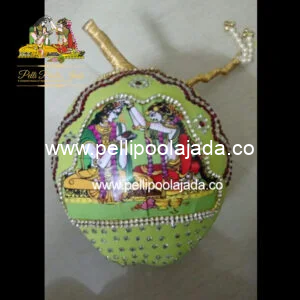 .FRONT SIDE OF KOBBARI BONDAM WITH RAM AND SITA TALAMBRALU DESIGN.