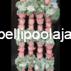 .IN HANGINGS WHITE BEADS AND PINK ROSES ARE USED.