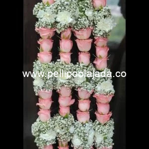 .GARLANDS MADE WITH DARK PINK ROSES, GYPSOPHILA/ BABY’S- BREATH FLOWER OF NATURAL FLOWERS AND WHITE CARNATION FLOWERS.