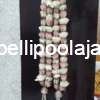 .IN HANGINGS WHITE BEADS WITH LIGHT PINK ROSES ARE USED.