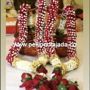 .GARLANDS MADE WITH WHITE BUDS IN ROSE PETALS.