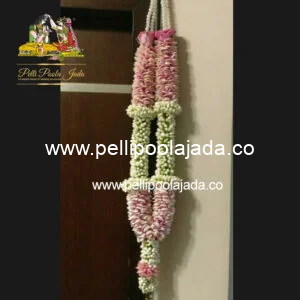 .GARLANDS MADE WITH BABY PINK FLOWERS, BABY PINK OR LIGHT PINK ROSE PETALS AND CIRCLED WHITE BUDS ARE USED.