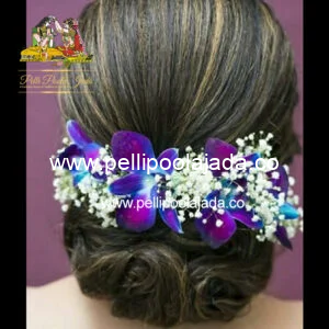 .VENIS MADE WITH GYPSOPHILA/ BABY’S- BREATH FLOWER OF NATURAL FLOWERS WITH BLUE ORCHIDS ARE USED.